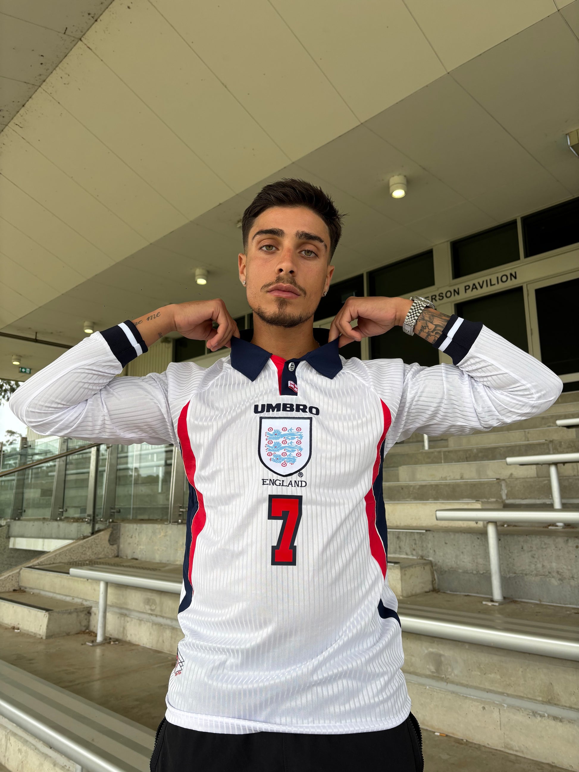 The Retro 1998 England Home Long Sleeve Kit featuring David Beckham captures a defining era of English football. With its classic white design and iconic long sleeves, this kit represents Beckham’s precision, flair, and leadership on the international stage. A must-have for collectors and fans who want a piece of England’s football history.