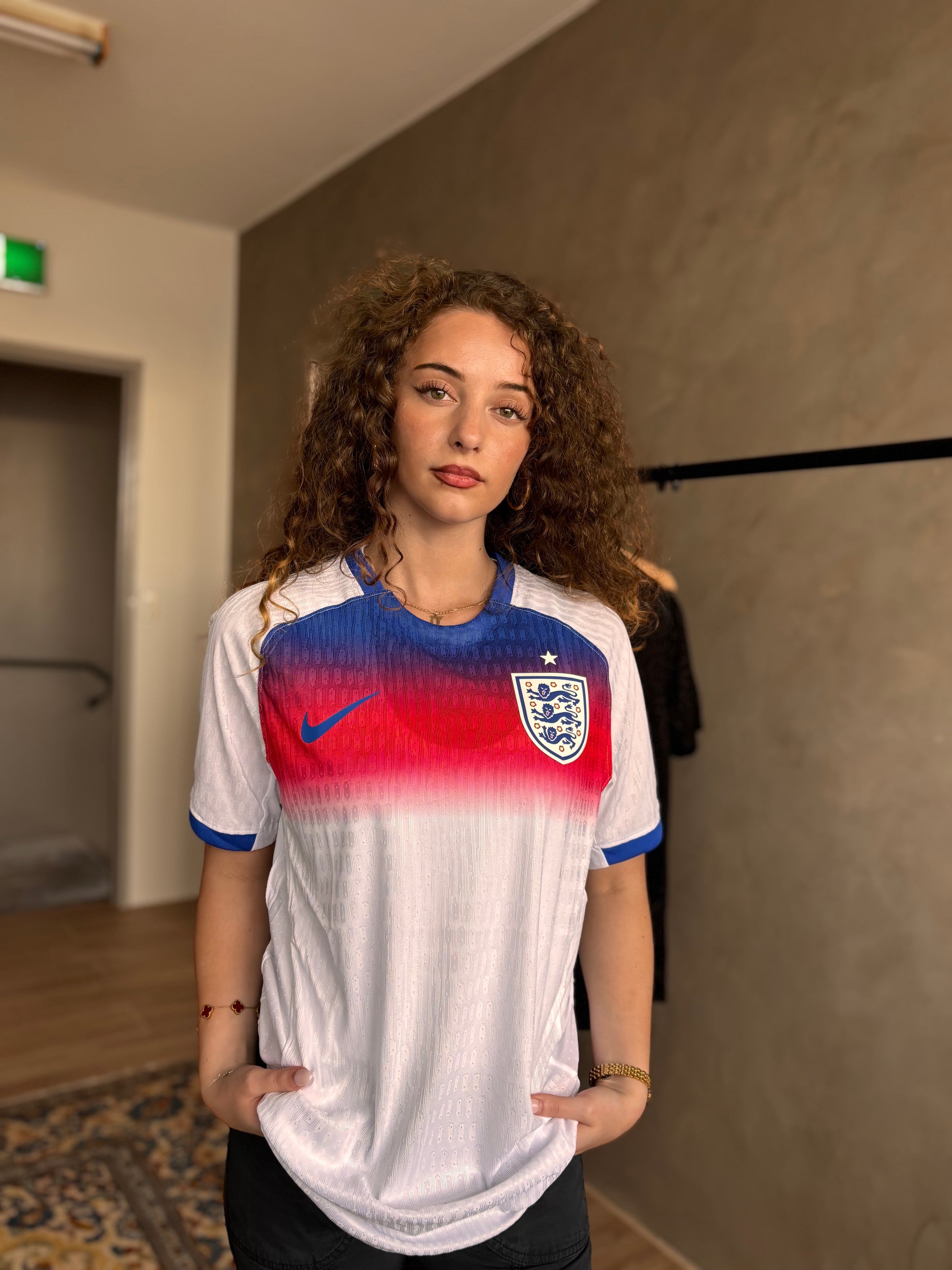 Represent the Lionesses in the 25/26 Women’s Home jersey. Designed for fans and players alike, it combines iconic England style with modern performance and comfort on and off the pitch.